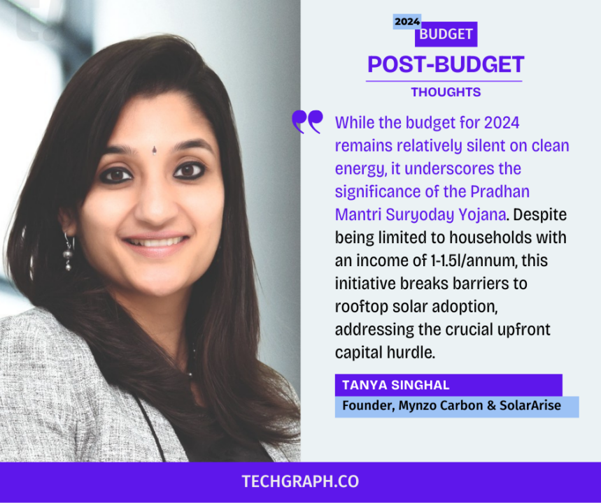 While the budget for 2024 remains relatively silent on clean energy, it underscores the significance of the Pradhan Mantri Suryoday Yojana. Despite being limited to households with an income of 1-1.5l/annum, this initiative breaks barriers to rooftop solar adoption, addressing the crucial upfront capital hurdle.