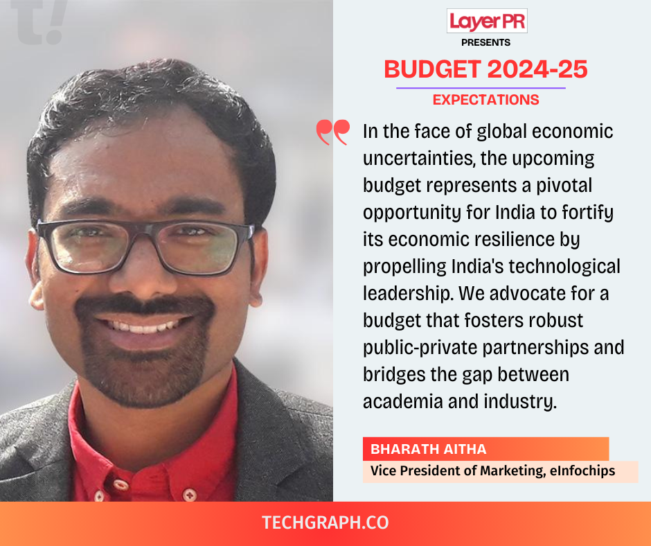 In the face of global economic uncertainties, the upcoming budget represents a pivotal opportunity for India to fortify its economic resilience by propelling India’s technological leadership. At eInfochips, we advocate for a budget that fosters robust public-private partnerships and bridges the gap between academia and industry. This will catalyze cutting-edge research and development, positioning India at the forefront of global innovation.