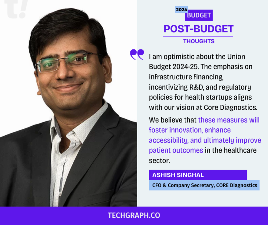 I am optimistic about the Union Budget 2024-25. The emphasis on infrastructure financing, incentivizing R&D, and regulatory policies for health startups aligns with our vision at Core Diagnostics. We believe that these measures will foster innovation, enhance accessibility, and ultimately improve patient outcomes in the healthcare sector. We look forward to seeing the positive impact of these policies on the diagnostics industry and the healthcare sector as a whole. This Interim Budget was neutral for the Diagnostics industry, and we hope for a favorable budget in the Final budget.