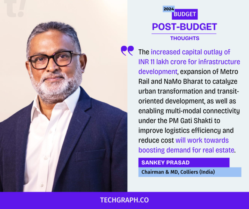 Besides, the increased capital outlay of INR 11 lakh crore for infrastructure development, expansion of Metro Rail and NaMo Bharat to catalyze urban transformation and transit-oriented development, as well as enabling multi-modal connectivity under the PM Gati Shakti to improve logistics efficiency and reduce cost will work towards boosting demand for real estate.