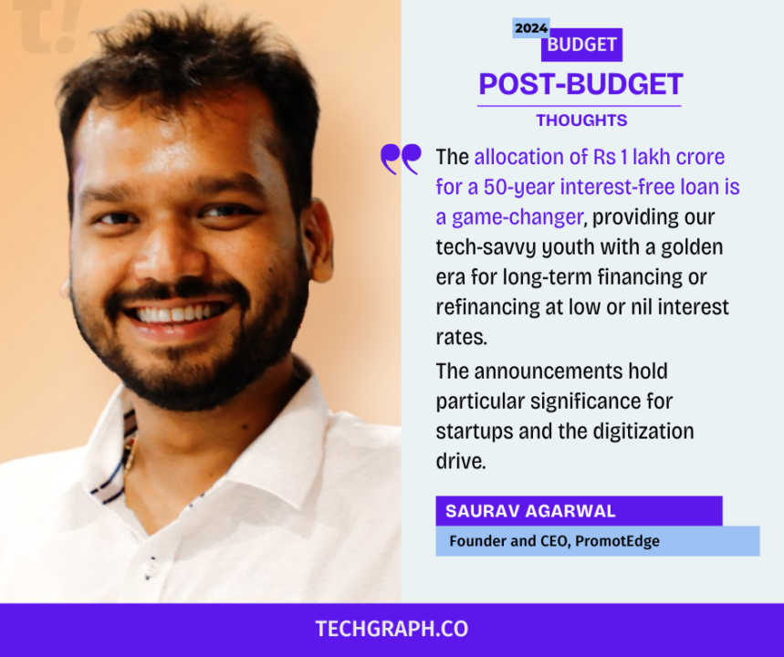 The allocation of Rs 1 lakh crore for a 50-year interest-free loan is a game-changer, providing our tech-savvy youth with a golden era for long-term financing or refinancing at low or nil interest rates. The announcements hold particular significance for startups and the digitization drive. Since this was an interim budget, there was not much regarding the digital sector, we expect much more in the upcoming budget in July.