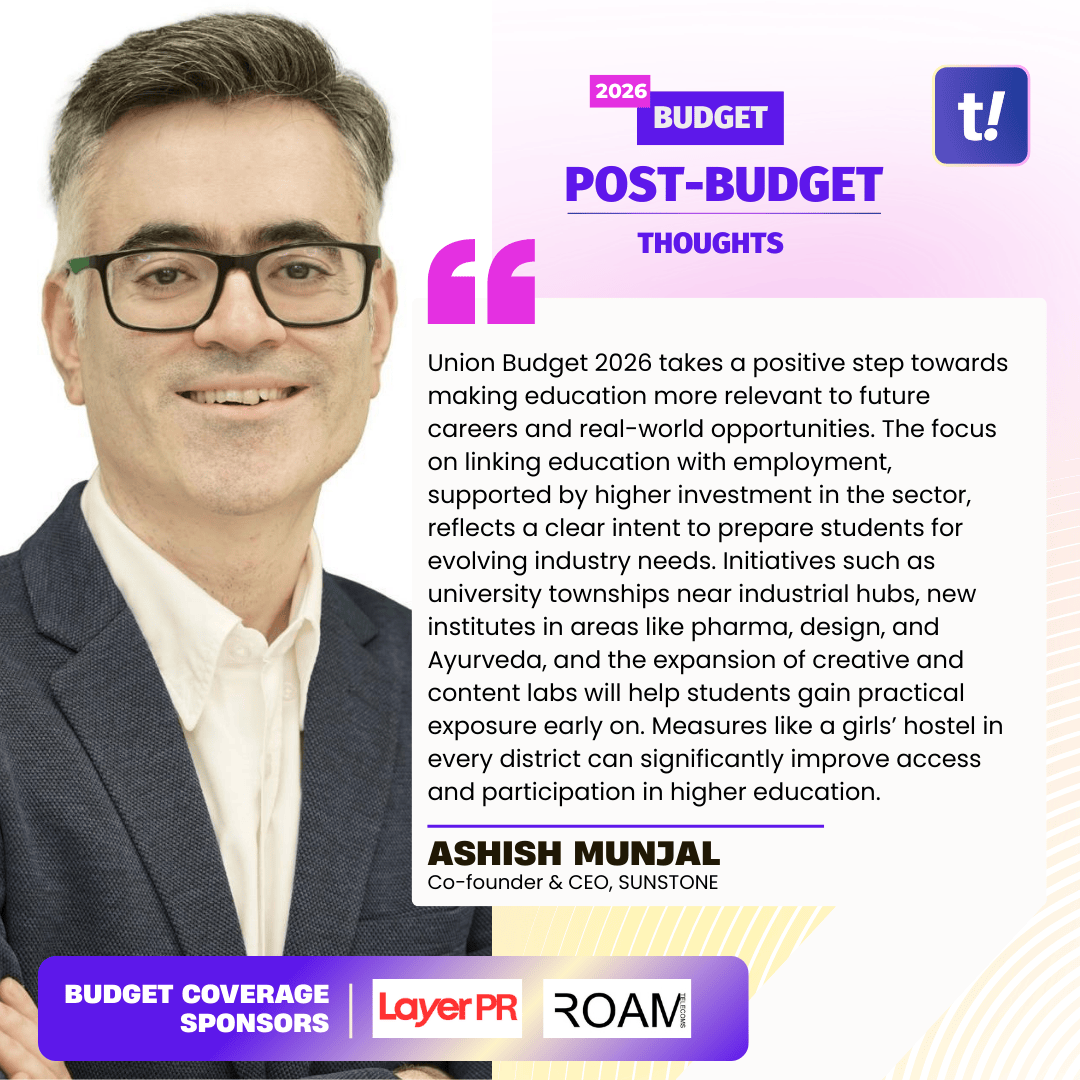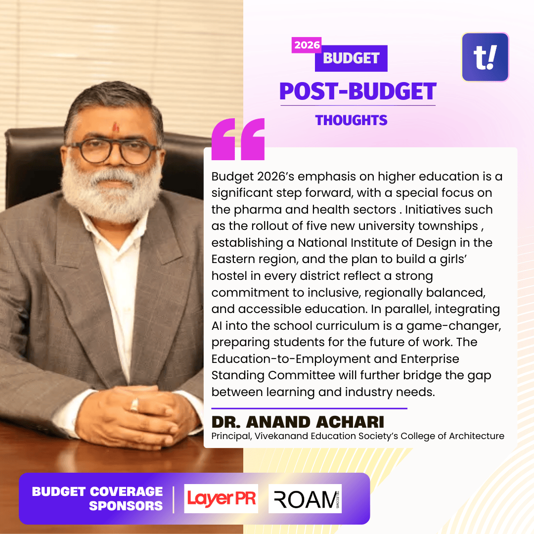Union Budget 2026 takes a positive step towards making education more relevant to future careers and real-world opportunities. The focus on linking education with employment, supported by higher investment in the sector, reflects a clear intent to prepare students for evolving industry needs. Initiatives such as university townships near industrial hubs, new institutes in areas like pharma, design, and Ayurveda, and the expansion of creative and content labs will help students gain practical exposure early on.