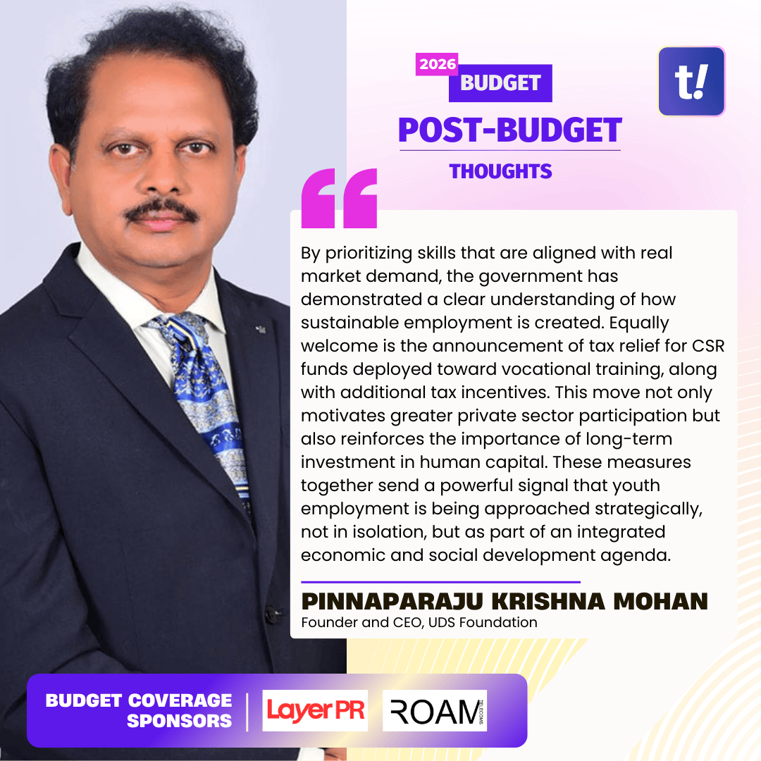 The Union Budget’s strong focus on vocational training and deeper linkages with industry is a highly encouraging and much-needed step toward addressing the employability challenges faced by India’s youth. By prioritizing skills that are aligned with real market demand, the government has demonstrated a clear understanding of how sustainable employment is created. Equally welcome is the announcement of tax relief for CSR funds deployed toward vocational training, along with additional tax incentives.