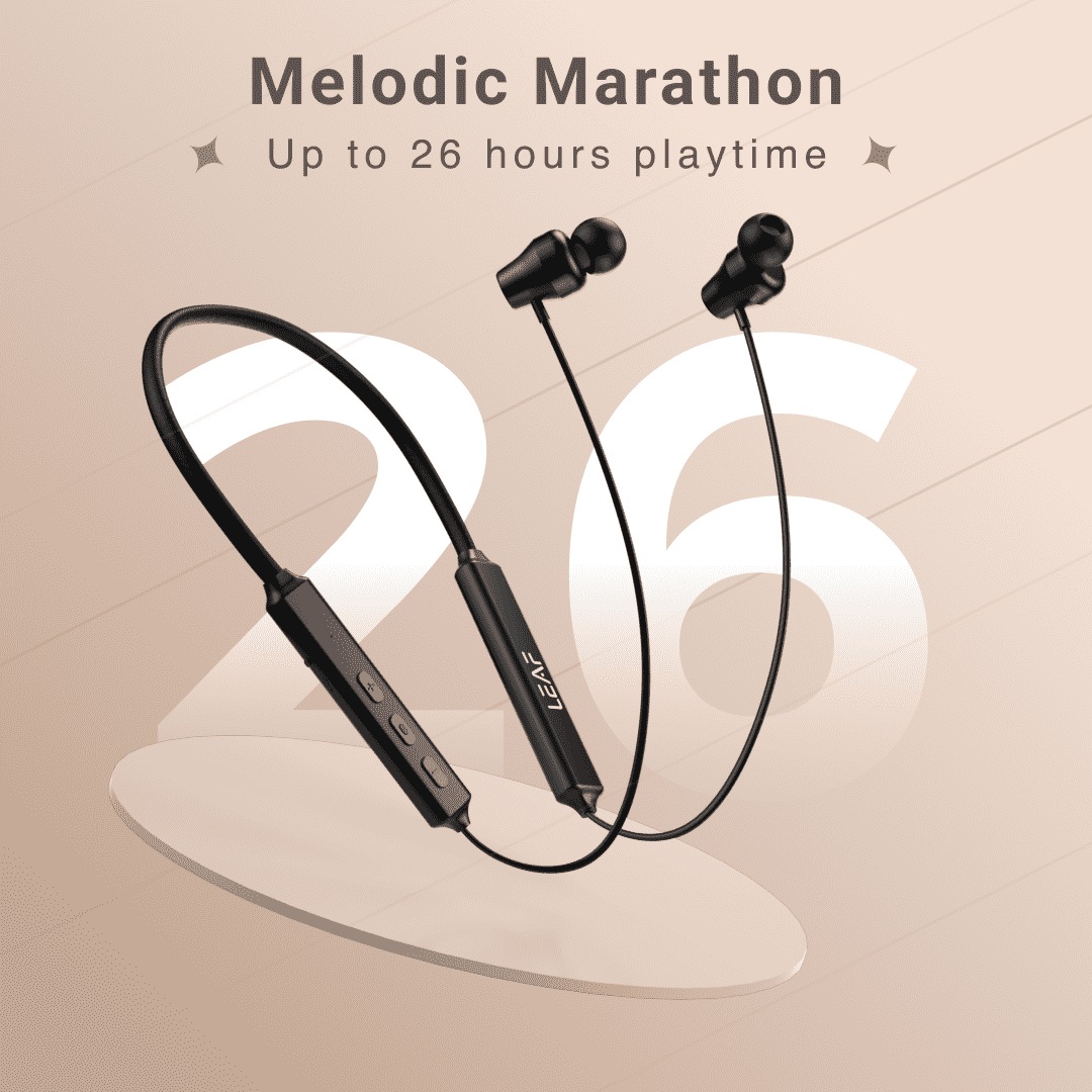 The Leaf Rush x342, available for INR 699, features Bluetooth v5.3 and up to 30 hours of music playback. The 10 mm driver unit delivers stereo sound, and the pure silicone neckline with a metal ear shell ensures a comfortable fit. These neckbands include hall switch control (ON/OFF), low power consumption, OVP (6.3V), and a standby time of 170 hours. They offer 3 EQ modes (bass, music, vocal) and a frequency response of 20Hz-20kHz.