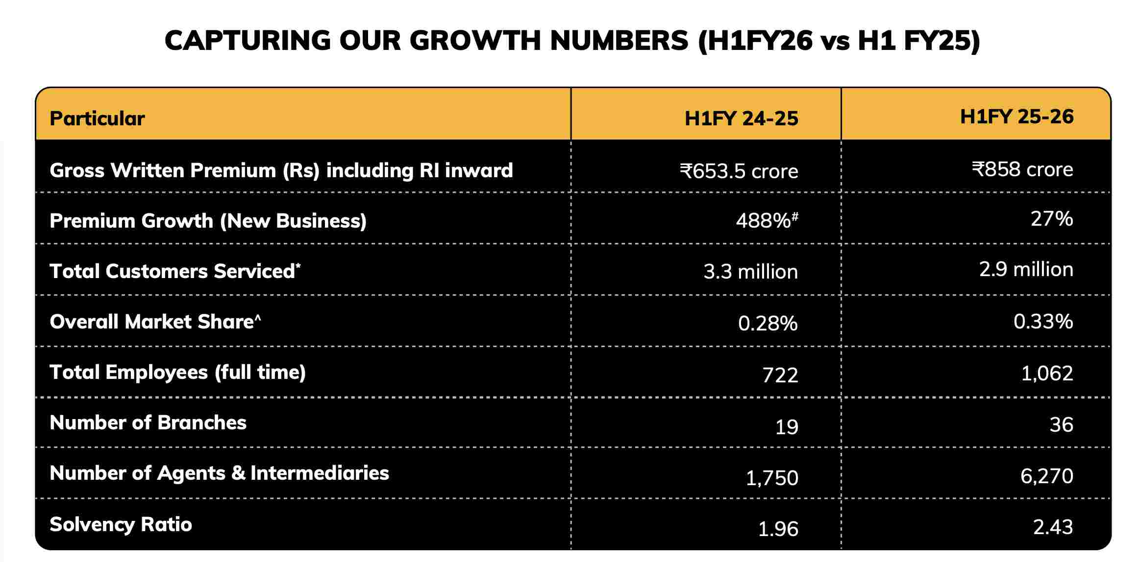 The solvency ratio during the period stood at 2.43, while new business premium grew 27 per cent, and the company serviced 2.9 million customers, extending its physical presence to 36 branches supported by 6,270 agents and intermediaries across the country.